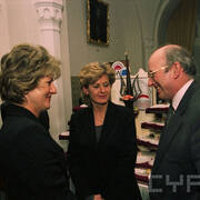 Przewodnicząca Rady Miasta Poznania Jadwiga Rotnicka, prezydent Poznania Wojciech Szczęsny Kaczmarek i wojewoda poznański Włodzimierz Łęcki na mszy św. pogrzebowej Edwarda hr. Raczyńskiego, prezydenta RP na uchodźstwie, w katedrze