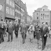 Delegacja samorządowców z Niemieckiej Republiki Demokratycznej (?) na Starym Rynku w Poznaniu