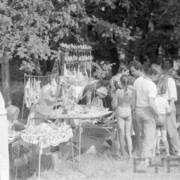 Plażowicze przy stoisku z lodami nad Rusałką w dniu Narodowego Święta Odrodzenia Polski