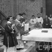 Arcybiskup Jerzy Stroba koncelebruje mszę św. pogrzebową Edwarda hr. Raczyńskiego, prezydenta RP na uchodźstwie, w poznańskiej katedrze
