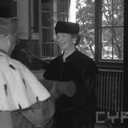 Rektor UAM prof. Jerzy Fedorowicz wręcza doktorat honoris causa Uniwersytetu im. Adama Mickiewicza prezydent Irlandii Mary Robinson, Aula Lubrańskiego