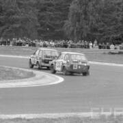 Wyścig fiatów 126p w czasie 2. eliminacji Wyścigowych Samochodowych Mistrzostw Polski na Torze Poznań