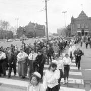 Formowanie pochodu pierwszomajowego na ul. Zwierzynieckiej
