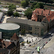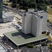Novotel i Ibis Poznań Centrum, dawniej hotel Orbis Poznań, z lotu ptaka