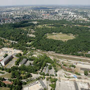 Park Cytadela na terenie dawnego fortu Winiary z lotu ptaka