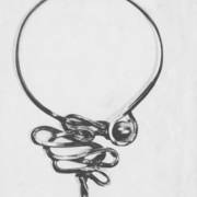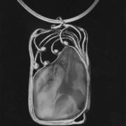 Projekty biżuterii Ryszarda Kulma, sześć wzorów o formach płaskich, pozostałe trzy o formach secesyjnych, ażurowe, z wykorzystaniem bursztynu lub masy perłowej