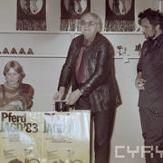 Wernisaż wystawy biżuterii Marii i Ryszarda Kulmów w Muzeum Rzemiosł Artystycznych w Poznaniu (obecnie Muzeum Sztuk Użytkowych MNP), od lewej: Ewa, córka Kulmów, Ryszard i Maria Kulmowie i Henryk Kondziela, dyrektor MNP05.1987