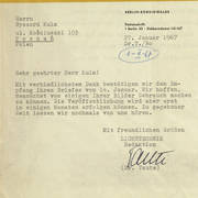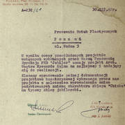 Pismo Przedsiębiorstwa Handlu Detalicznego "Jubiler" adresowane do Pracowni Sztuk Plastycznych informujące o wyborze projektu Ryszarda Kulma wykorzystanym do adaptacji sklepu "Chinka" na sklep jubilerski30.03.1962
