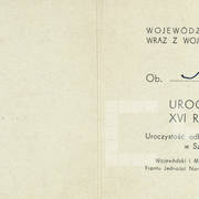 Zaproszenie na uroczystość XVI rocznicy Odrodzenia Polski Ludowej organizowanej przez Prezydia Wojewódzkiej i Miejskiej Rady Narodowej w Szczecinie z udziałem Wojewódzkiego i Miejskiego Komitetu Frontu Jedności Narodu (po rozłożeniu)1960