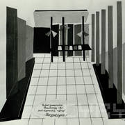 Projekt sklepu lub ekspozycji kwiatów utrzymany w stylistyce lat 50. XX wieku, będący wraz z kolejnym projektem (CYRYL_4_2_1_3_0039) całością dekoracji1957–1960