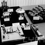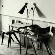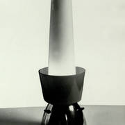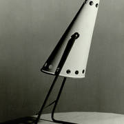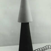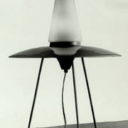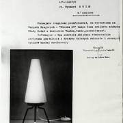 Lampa biurkowa, stojąca projektu Ryszarda Kulma, wzór 59/M z przełomu lat 50. i 60. XX wieku zaprezentowana na wystawie mody i wyrobów sztuki użytkowej w Pałacu Kultury w Warszawie w 1961 roku