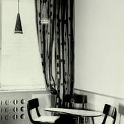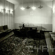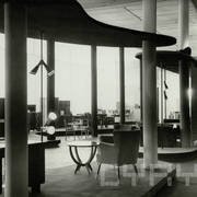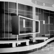 Wnętrze sklepu meblowego przy Al. Marcinkowskiego utrzymane w stylistyce nowoczesności przełomu lat 50. i 60. XX wieku z charakterystyczną geometryczną rytmizacja form i kontrastami barw1960–1964