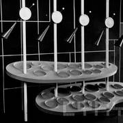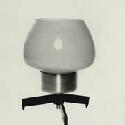Lampa stojąca z "kosmicznym" kloszem na rurkowym trójnogu projektu Ryszarda Kulma, wzór nr 15/M nawiązuje do wszechobecnej w sztuce tego czasu inspiracji nauką i techniką1961–1964