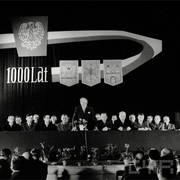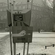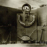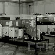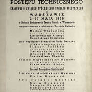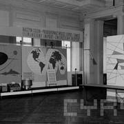 Plansza dekoracyjna przy wejściu na Wystawę Produkcji i Postępu Technicznego Krajowego Związku Spółdzielni Sprzętu Medycznego w Warszawie02.05.1959–17.05.1959