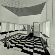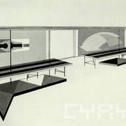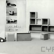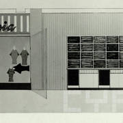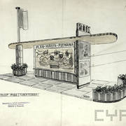 Projekt sklepu owocowo-warzywnego lub ekspozycji utrzymany w stylistyce nowoczesności lat 50. XX wieku, stanowi z poprzednim projektem (CYRYL_4_2_1_3_0038) całość dekoracji1957–1960
