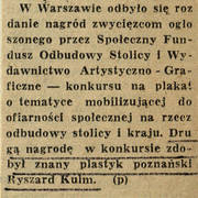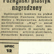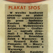 Informacja prasowa o nagrodach przyznanych w konkursie na plakat Społecznego Funduszu Odbudowy Stolicy zorganizowanym przez Społeczny Fundusz Odbudowy Kraju i WAG Wydawnictwo Artystyczno-Graficzne RSW "Prasa"21.07.1963