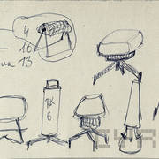 Cztery szkice koncepcyjne prawdopodobnie do plakatu Wystawy Produkcji i Postępu Technicznego Krajowego Związku Spółdzielni Sprzętu Medycznego w Warszawie1959