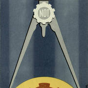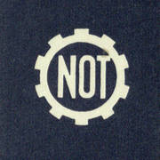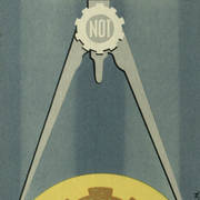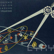 Druga wersja kolorystyczna (faza druku?) ulotki reklamowej Naczelnej Organizacji Technicznej/Informacji Technicznej na Międzynarodowych Targach Poznańskich1959–1963