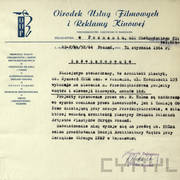Zaświadczenie potwierdzające wykonywanie projektów wnętrz, elewacji kinowych i neonów przez Ryszarda Kulma na zlecenie Ośrodka Usług Filmowych i Reklamy Kinowej31.01.1964