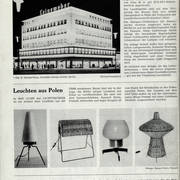 Informacja prasowa na temat Targów Wzornictwa Przemysłowego, które odbyły się w Pałacu Kultury w Warszawie w 1961 roku, ilustrowana modelami lamp Ryszarda Kulma19.02.1961