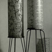 Lampa projektu Ryszarda Kulma, wzór 76/M z kloszem cylindrycznym odwróconym, na rurkowym trójnogu nagrodzona złotym medalem w konkursie "Ładne, tanie, poszukiwane" na Targach Krajowych w Poznaniu "Wiosna 64"1961–1963
