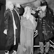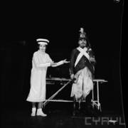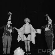 Edmund Pietryk jako Kolejarz (z lewej), Barbara Dogorób jako Mniszka i Rajmund Jakubowicz jako Czarny huzar w spektaklu Janusza Wiśniewskiego "Panopticum a'la Madame Tussaud"