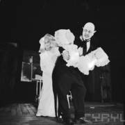 Elżbieta Jarosik jako Belina i Marian Pogasz jako Argan w spektaklu Janusza Wiśniewskiego "Panopticum a'la Madame Tussaud"