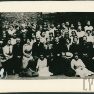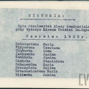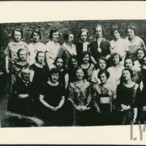 Halina Świetlik (po mężu Kawczyńska, pierwsza od lewej w drugim rzędzie) z nauczycielami i koleżankami z Gimnazjum Żeńskiego przy ul. Głogowskiej06.1939