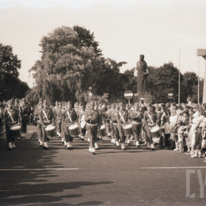Orkiestra wojskowa na czele konduktu z doczesnymi szczątkami Ignacego Jana Paderewskiego na pl. Mickiewicza