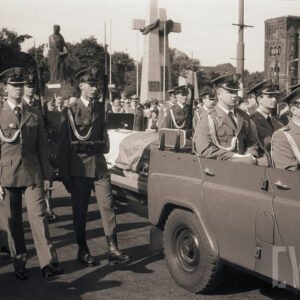 Kondukt z doczesnymi szczątkami Ignacego Jana Paderewskiego na pl. Mickiewicza