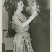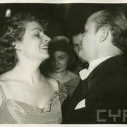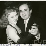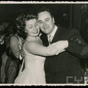 Stefania Cholewczyńska-Derwich tańczy z Januszem Przewoźnym, historykiem sztuki, kierownikiem Wydziału Kultury Urzędu Miasta, na imprezie w budynku Prasy1959