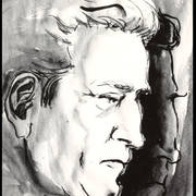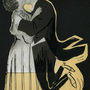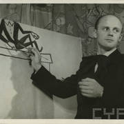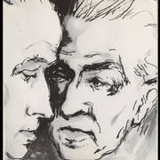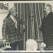 Tadeusz Henryk Nowak (pseud. thn), poznański dziennikarz, felietonista i satyryk, oraz rysownik Henryk Derwich na balu "Głosu Wielkopolskiego" na tle dekoracji autorstwa Derwicha1958–1959