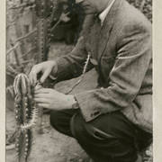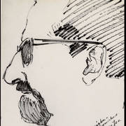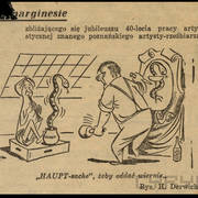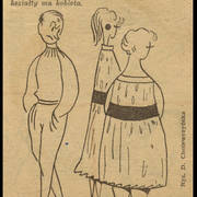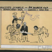 Okolicznościowa kartka wykonana przez Lecha Susickiego, rysownika z "Kaktusa", z okazji imienin Henryka Derwicha wklejona do brulionu Stefanii Cholewczyńskiej-Derwich1958