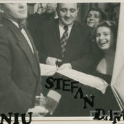 Fotografie z balu "Głosu Wielkopolskiego" w budynku Prasy i Henryk Derwich jako spowiednik Józefa Koneckiego, red. naczelnego gazety, na kolażu Stefanii Cholewczyńskiej1958–1959
