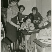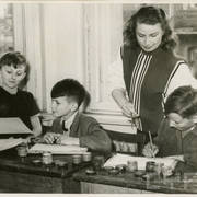 Stefania Daniela Cholewczyńska-Derwich z dziećmi (głównie poznańskich dziennikarzy), z którymi prowadziła zajęcia plastyczne w budynku RSW Prasa przy ul. Grunwaldzkiej 191960–1961