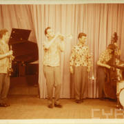Tadeusz Henryk Nowak, Stefania Cholewczyńska-Derwich, Henryk Derwich i ówczesny szef Radia Poznańskiego Stanisław Kubiak na imprezie sylwestrowej w budynku Prasy przy ul. Grunwaldzkiej 1931.12.1957