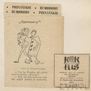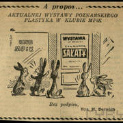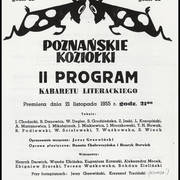 I program Kabaretu Literackiego Koziołki Poznańskie; na pierwszym planie aktorzy Zofia Strer, Zdzisław Słowiński i Janina Ratajska, za nimi literat Witold Degler, rysownik Henryk Derwich, aktorzy Juliusz Chodacki i Eugeniusz Kotarski26.02.1955