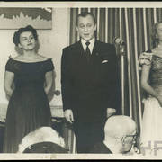 Irena Marcowa, Stefania Cholewczyńska-Derwich oraz satyryk i konferansjer Jerzy Ofierski na imprezie sylwestrowej w budynku Prasy przy ul. Grunwaldzkiej 191958