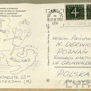 Życzenia z okazji ślubu Stefanii Danieli Cholewczyńskiej i Henryka Derwicha od Zbigniewa, Stefanii i Przemysława Kajów na odwrocie kartki z kolażem05.1956