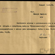 Zlecenie z Polskiej Izby Handlu Zagranicznego dla Henryka Derwicha na realizację rysunków w programie telewizyjnym w pawilonie USA na Międzynarodowych Targach Poznańskich12.06.1958