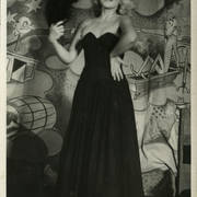 Aleksandra Mocek w II programie Kabaretu Literackiego Koziołki Poznańskie na tle kotary zaprojektowanej przez Stefanię Danielę Cholewczyńską i Henryka Derwicha21.11.1955