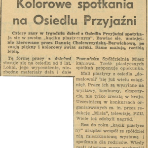 Artykuł poświęcony pracowni plastycznej dla dzieci Paleta prowadzonej przez Stefanię Cholewczyńską-Derwich w piwnicy bloku nr 1D na os. Przyjaźni04.06.1975