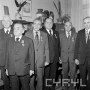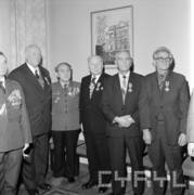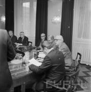 Wizyta sekretarza KC PZPR Andrzeja Żabińskiego (trzeci od prawej) w siedzibie KW PZPR (obecnie Collegium Historicum), drugi od prawej siedzi Jerzy Zasada I sekretarz KW PZPR w Poznaniu21.03.1980