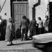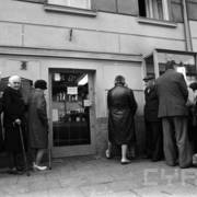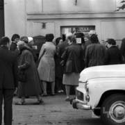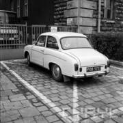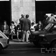 Syrena 105 przed bramą prowadzącą na wewnętrzny dziedziniec Akademii Ekonomicznej (obecnie Uniwersytet Ekonomiczny) przy ul. Marchlewskiego (obecnie al. Niepodległości)01.11.1981