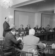 Wizyta sekretarza KC PZPR Andrzeja Żabińskiego (czwarty od prawej) w siedzibie Poznańskiej Fabryki Maszyn Żniwnych "Agromet", trzeci od prawej siedzi Jerzy Zasada I sekretarz KW PZPR w Poznaniu21.03.1980