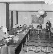 Wizyta sekretarza KC PZPR Andrzeja Żabińskiego (trzeci od prawej) w siedzibie Poznańskiej Fabryki Maszyn Żniwnych "Agromet", drugi od prawej siedzi Jerzy Zasada I sekretarz KW PZPR w Poznaniu21.03.1980