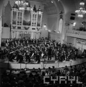 Koncert symfoniczny orkiestry filharmonii wileńskiej pod kierownictwem Margarity Dwarionaite, dla członków Młodzieżowego Ruchu Miłośników Muzyki "Pro Sinfonika" w Auli Uniwersyteckiej19.04.1980