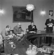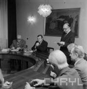 Wizyta sekretarza KC PZPR Andrzeja Żabińskiego (drugi od lewej) w siedzibie KW PZPR (obecnie Collegium Historicum), trzeci od lewej siedzi Jerzy Zasada I sekretarz KW PZPR w Poznaniu21.03.1980