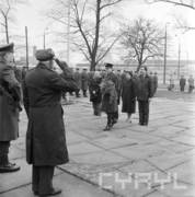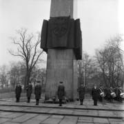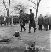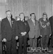 Uroczystość wręczenia sztandaru zakładowego Dyrekcji Okręgowej Dróg Publicznych w Poznaniu przez Czesława Krzywosza, dyrektora Centralnego Zarządu Dróg Publicznych, w sali sesyjnej Urzędu Wojewódzkiego16.04.1980
