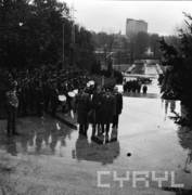 Uczniowie klas młodszych podczas uroczystości zakończenia roku szkolnego i pożegnania uczniów klas VIII w Szkole Podstawowej nr 84 im. Tadeusza Kościuszki na Dębcu18.06.1982